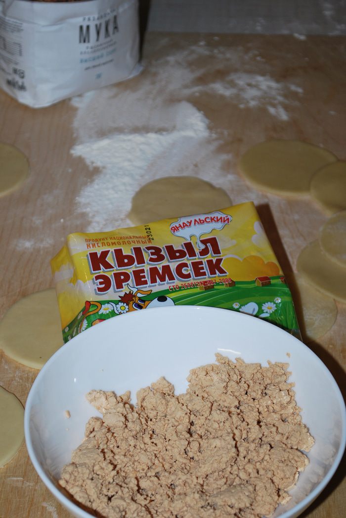Вареники с красным творогом эремсек. Эремсек — традиционный молочный продукт татарской и башкирской кухни. Его делают путем долгого томления молока и катыка, вкус у него глубокий, сладковатый, плотный творог с карамельно-сладким вкусом. У меня покупной красный творог.