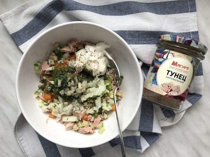 Тунца ТМ «Магуро» немного разомните вилкой.