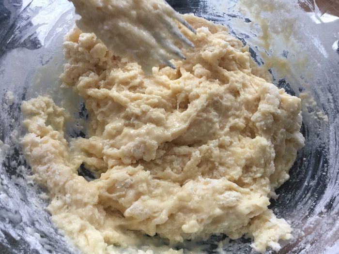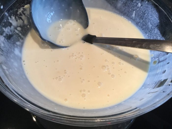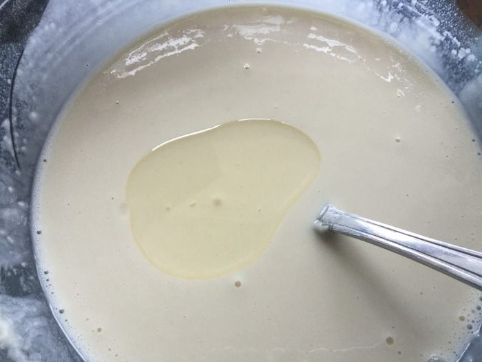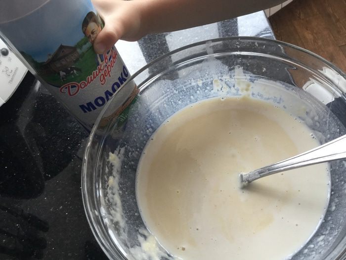 Постепенно добавьте оставшееся молоко, каждый раз хорошо взбивая тесто.