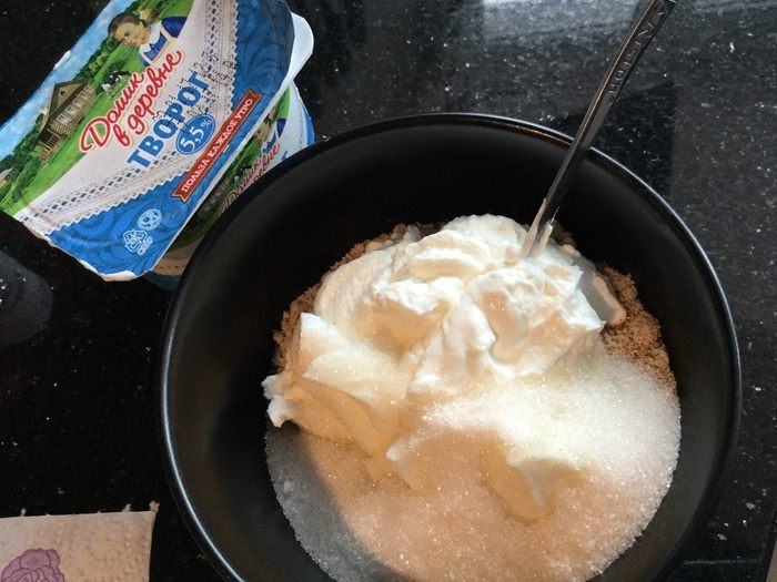 Смешайте ореховую крошку с сахаром и нежным творогом «Домик в деревне».