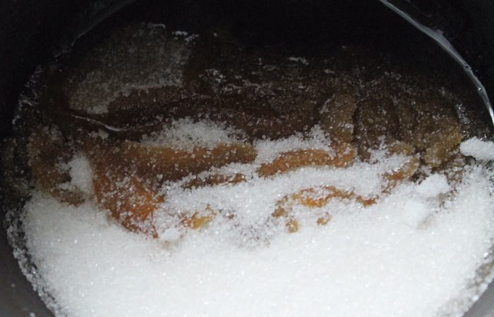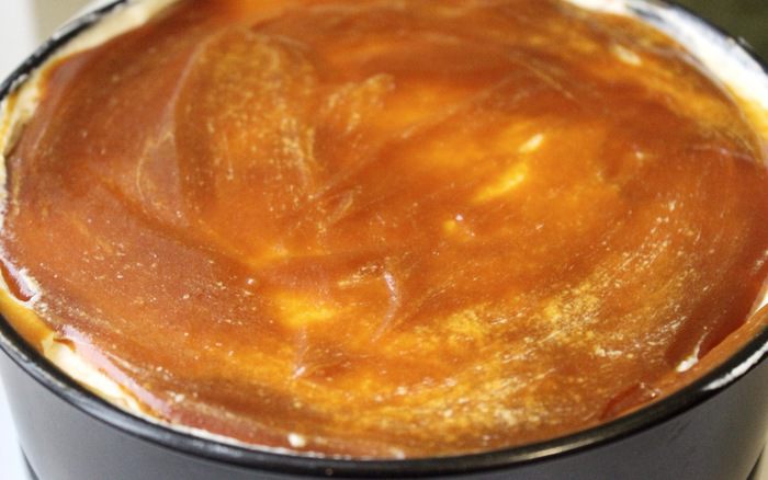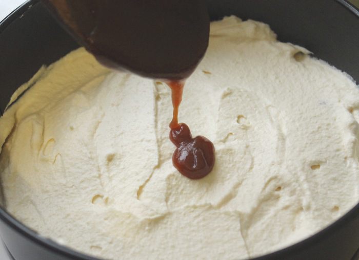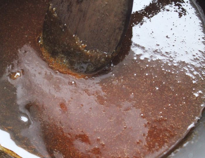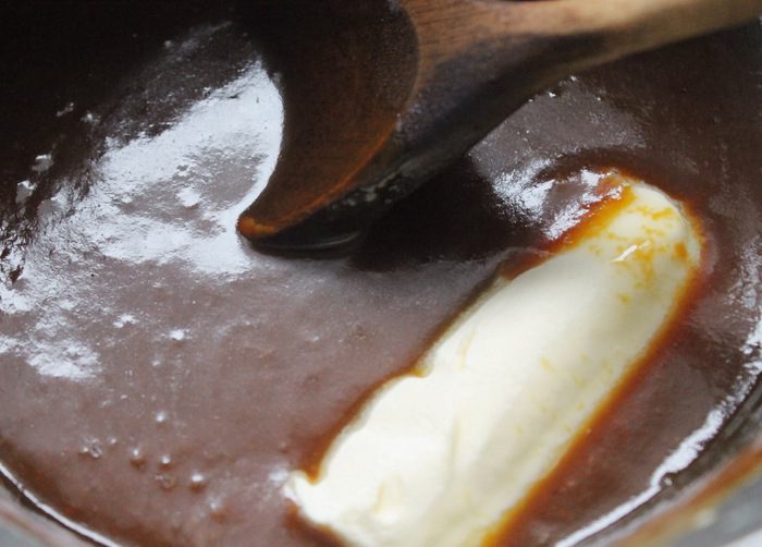 Когда сахар полностью расплавится и достигнет насыщенного медного цвета, снять сковороду с огня. Сразу же небольшими порциями добавить горячие сливки. Делать это нужно аккуратно, т.к. масса будет очень пузыриться, можно обжечься. Если часть карамели не растворилась в сливках, вернуть сковороду на слабый огонь и, постоянно помешивая, дать карамели раствориться.