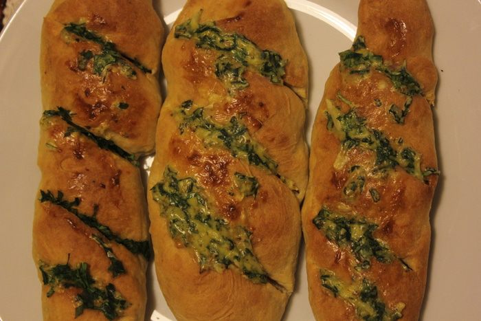 Застилаем противень бумагой или фольгой, укладываем багеты, делаем надрезы (или не делаем, все по желанию), даем им постоять 10-15 минут.