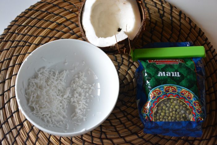 Кокос натереть на мелкой терке.