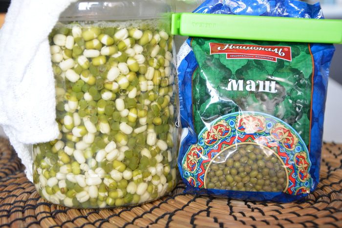 На следующий день вылить воду и промыть маш, залить новую воду, встряхнуть и оставить еще на 3 дня. Каждый день менять воду 2 раза — утром и вечером.