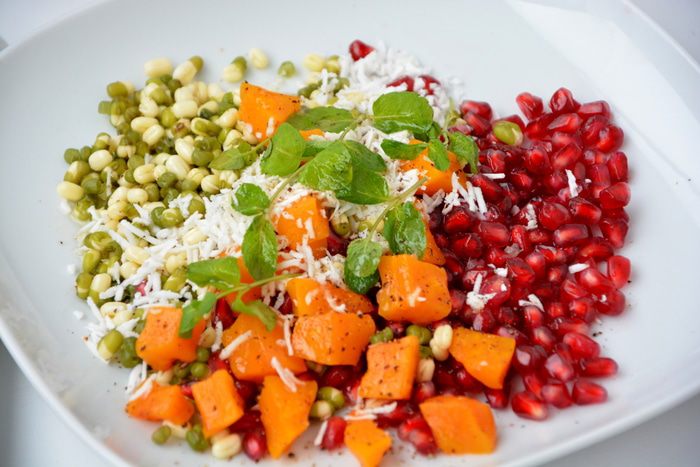 Очень полезный, вкусный и яркий салат. Маш очень легко прорастить в домашних условиях. Пророщенный маш очень вкусный, свежий и хрустящий, имеет немного сладковатый вкус.