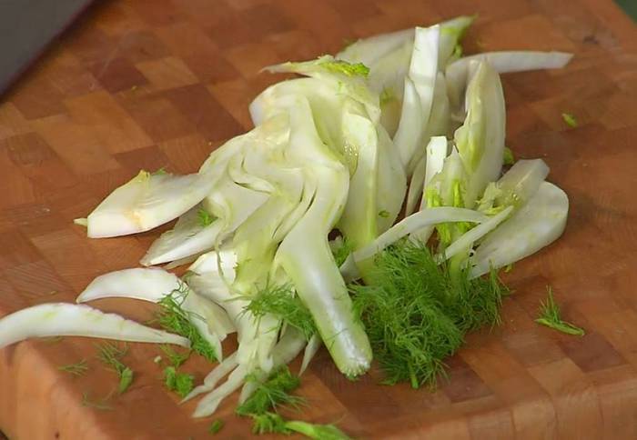 Фенхель нарезать тонкой соломкой.