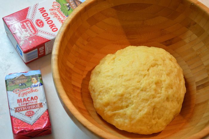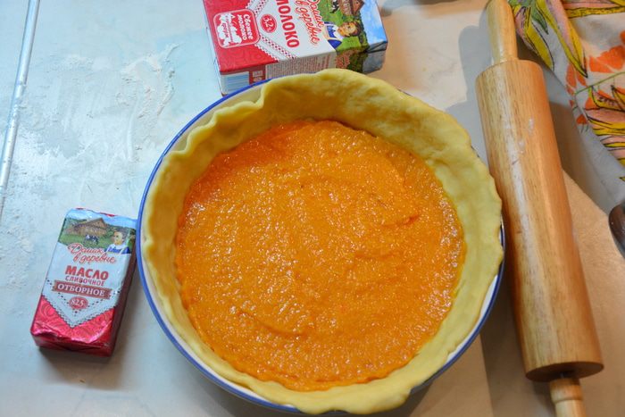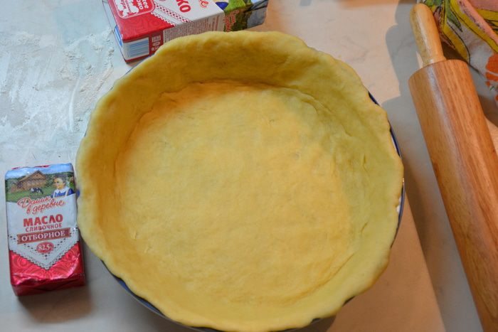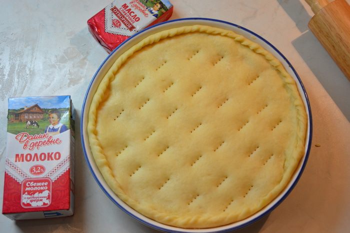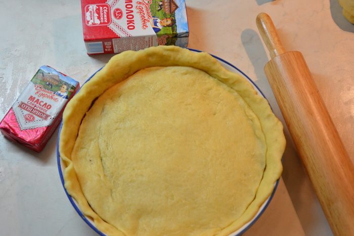 Большую часть раскатать в круг, выложить в форму, смазанную маслом.