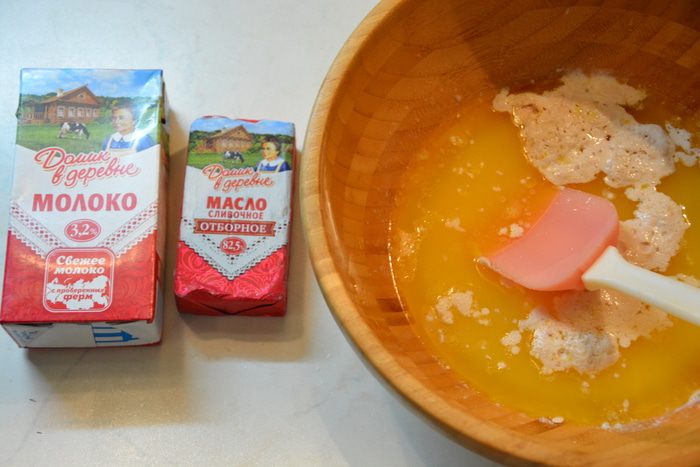 Растопить сливочное масло, влить опару.