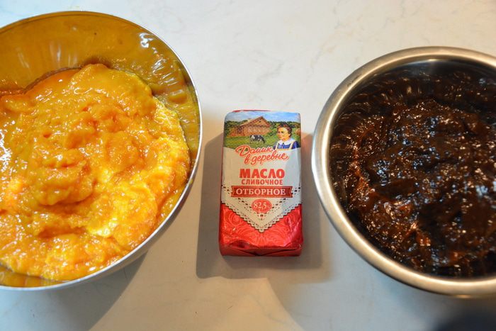 Измельчить в блендере или комбайне по отдельности курагу и чернослив. При необходимости добавить воды, но не переборщить: масса должна быть очень густой.