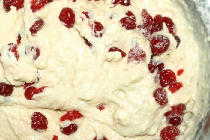 Вяленую вишню предварительно промыть, добавить в тесто. Тесто хорошо перемешать.