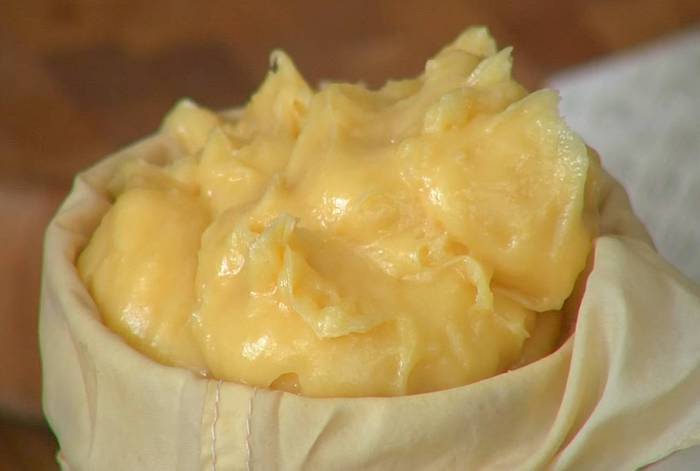 Заварное тесто можно приготовить и на молоке, но на воде, на мой взгляд, получается нежнее. Самое главное — это количество яиц: если их много, тесто внутри получается мокрым и плохо пропекается, а если мало, пирожные будут жесткими. Чтобы добиться оптимальной консистенции теста, лучше разбить яйца в стакан и вливать их небольшими порциями.