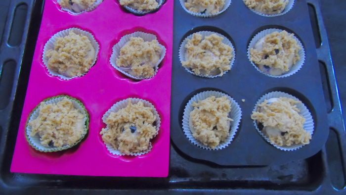 Отсадите тесто в формы, застеленные бумажными корзинками.