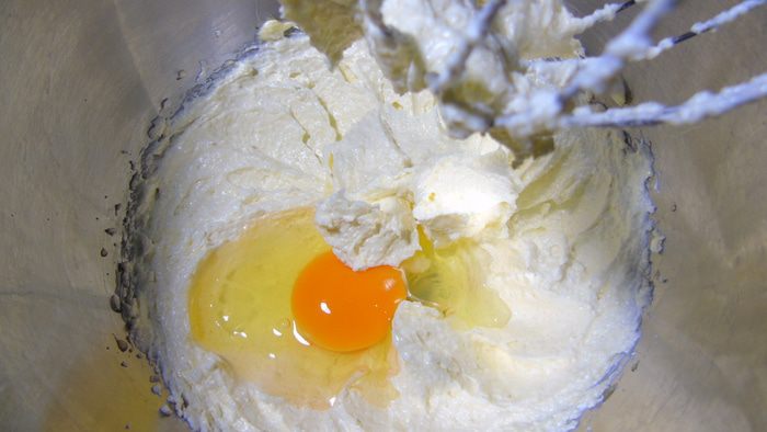 Добавьте яйцо и снова взбейте.