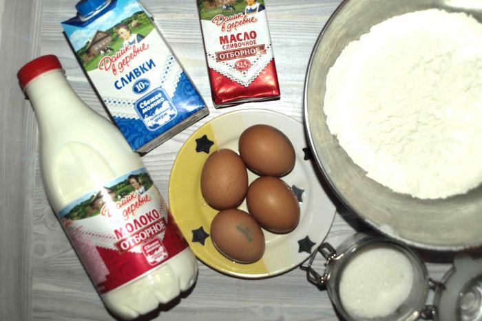 Блины имеют сливочный вкус. В оригинальном рецепте 1 стакан сахара, сливки жирные, сливочное масло 200 г. Я сократила количества сахара, сливки взяла 10% и часть заменила молоком, уменьшила количества масла. Во вкусе блины не потеряли благодаря 10% сливкам «Домик в деревне» и отборному молоку «Домик в деревне», а вот калорий немного убавилось.