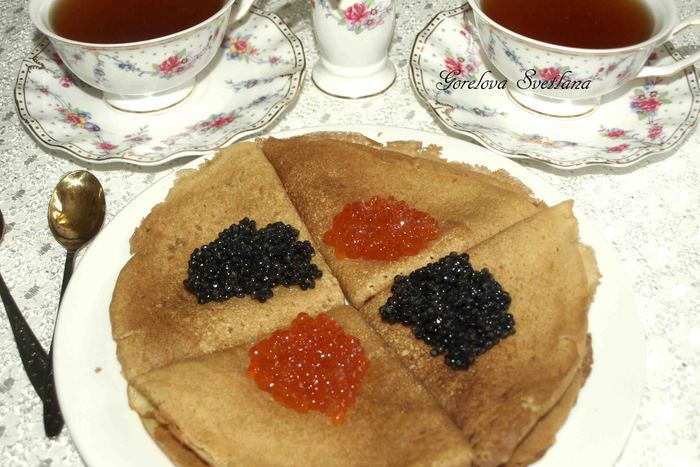Подавать блины можно с вареньем, сметаной, икрой, сельдью. Приятного аппетита!