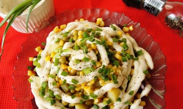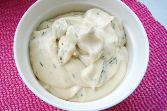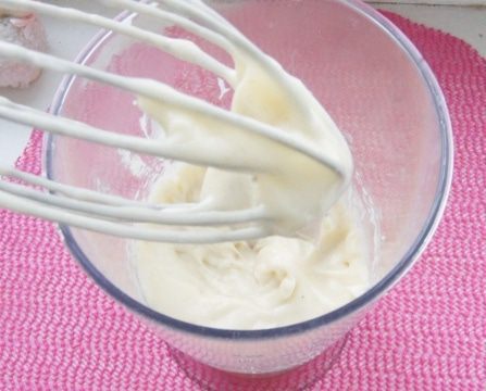 Удобнее взбивать блендером с насадкой «венчик», но можно и без блендера, но это займет больше времени. Начинаем взбивать на небольшой скорости. По капле влить пару ложек масла. Добавить еще 2 ложки сока лимона и, продолжая взбивать, влить оставшееся масло уже тонкой струйкой. Майонез густеет на глазах. Если получилось слишком густо, добавьте еще ложку лимонного сока.