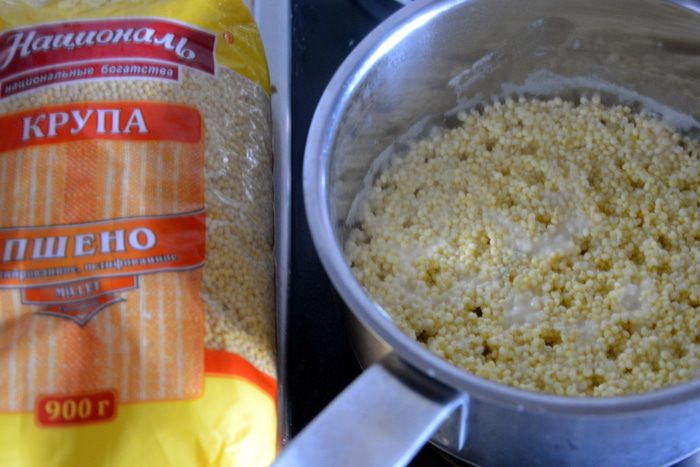 Пшено ТМ «Националь» промыть, добавить кипяток и варить, пока вся вода не выкипит.