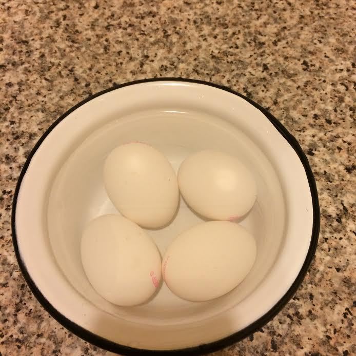 Яйца отварить. Охладить и нарезать на половинки.