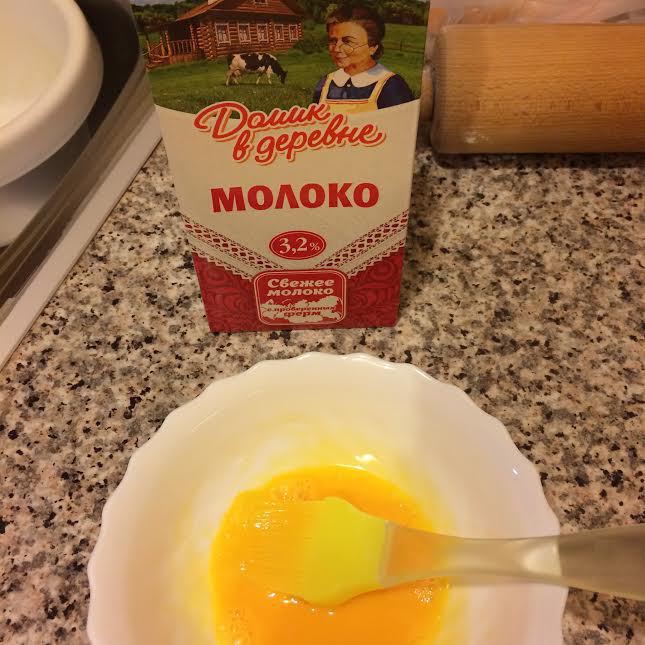 В желток добавить молоко «Домик в деревне», смешать.