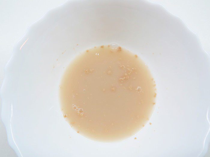 Дрожжи разводим в воде с сахаром и оставляем на 5 минут.