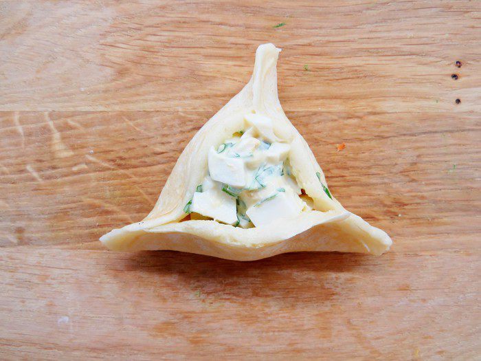 Поднимите края блинчика, чтобы получилось треугольное донышко.