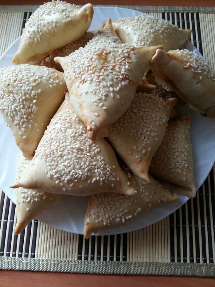 Готовые самбусики достаем из духовки, отделяем от пергамента, выкладываем на блюдо и наслаждаемся.