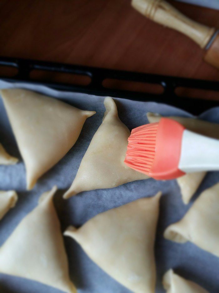 Смешиваем яичный желток с 1 ч. л. воды и смазываем все самбусики.