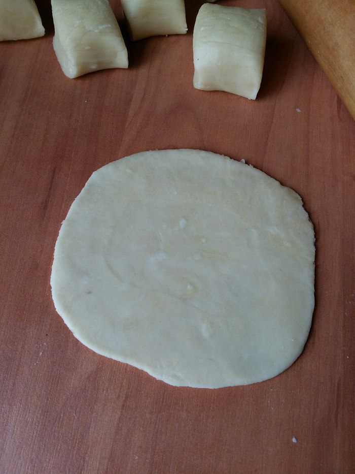 Каждый кусочек раскатываем в лепешку диаметром примерно 12 см.