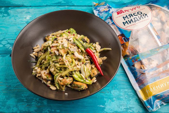 Готовим витаминный зеленый салат с мидиями!