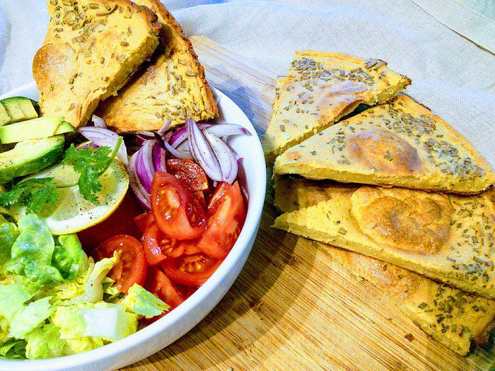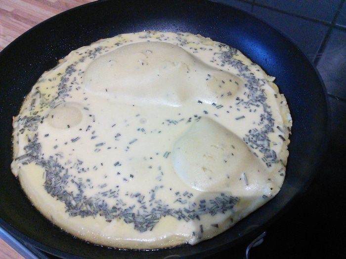 Важно! Понадобится сковородка или другая ёмкость, в которой можно жарить лепешку на плите, а затем поставить в духовку. Итак: разогреть духовку до 220°С. В сковороде разогреть 1 ст. л. масла и влить половину теста. Жарить на плите 3 минуты, затем отправить в духовку и допекать 20 мин до золотистой корочки. Все.
