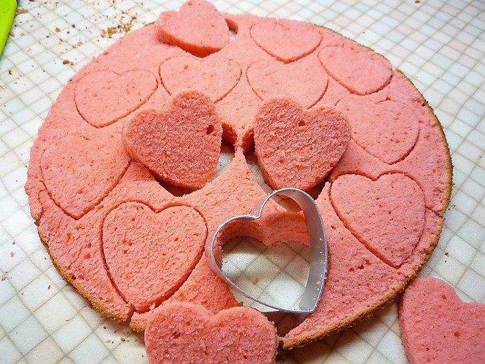 Украшаем посыпками в виде крупных и маленьких сердечек.