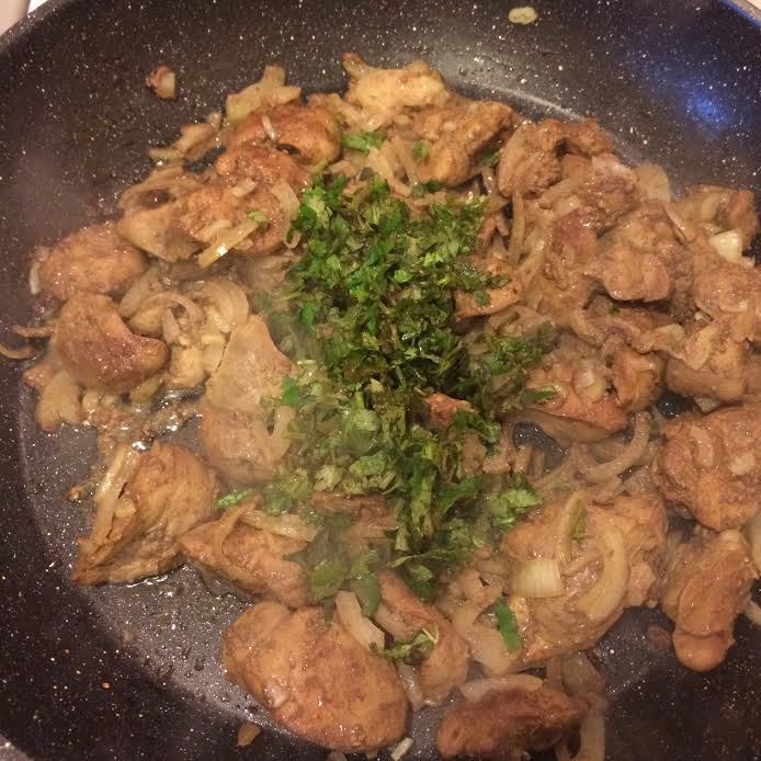 Затем добавить кинзу, тушить еще 2 минуты.