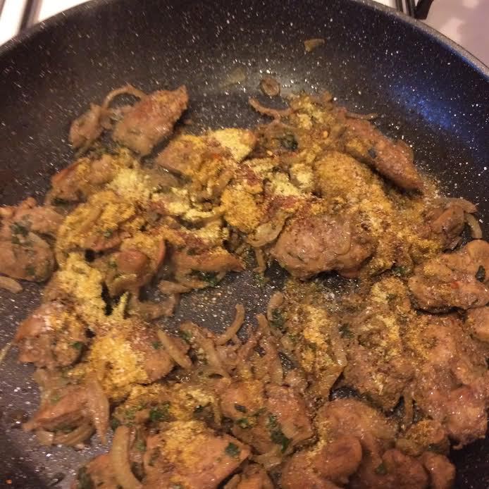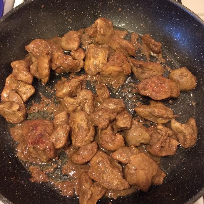 В сковороде с толстым дном обжарить печень (под крышкой) до готовности.