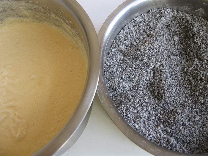 Муку с маком подмешать к яйцу с маслом.