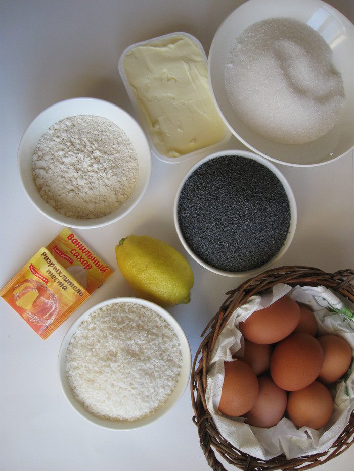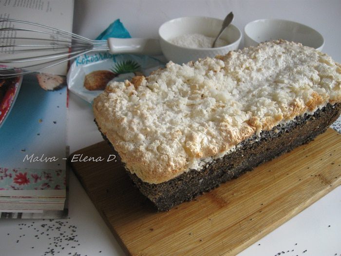 Хочу познакомить вас с рецептом оригинального мега-макового пирога. Пирог дополнен «кокосовым облачком», что создает интересные, несколько контрастирующие вкусовые сочетания. По вкусу «облачко» напоминает начинку баунти. Количество сахара сбалансировано, так что убавлять его, если соберетесь готовить этот пирог, не стоит. Вот такая «Переменная облачность» (есть замечательный мультфильм с таким названием, когда готовила «облачко», вспомнила о нем) сверху, а внутри — сплошное маковое удовольствие. Рецепт взят из немецкой кулинарной книги, в него внесены некоторые пояснения и дополнения.