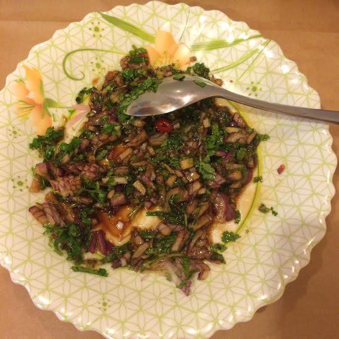 Лук, кинзу, чили мелко нарезать. Имбирь натереть на мелкой терке. В миске смешать: имбирь, лук, кинзу, соевый соус и оливковое масло.