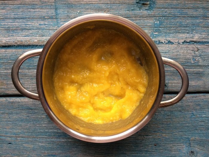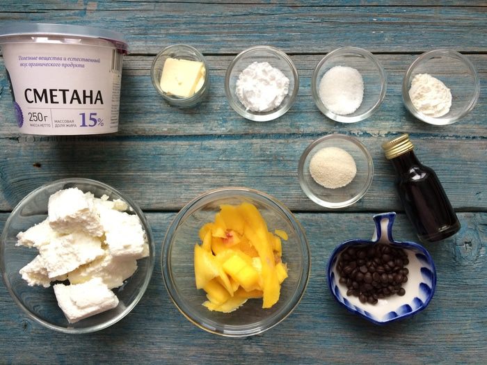 Для соуса: c помощью блендера измельчите манго до состояния пюре. В маленькой кастрюле прогрейте пюре манго с сахаром. Крахмал разведите в холодной воде, как только соус закипит, аккуратно влейте крахмал тонкой струйкой и размешайте. Держите на тихом огне, пока соус не загустеет.