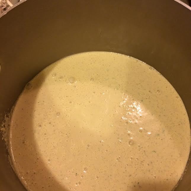 Переливаем ее в кастрюлю и на медленном огне, помешивая, доводим до кипения.