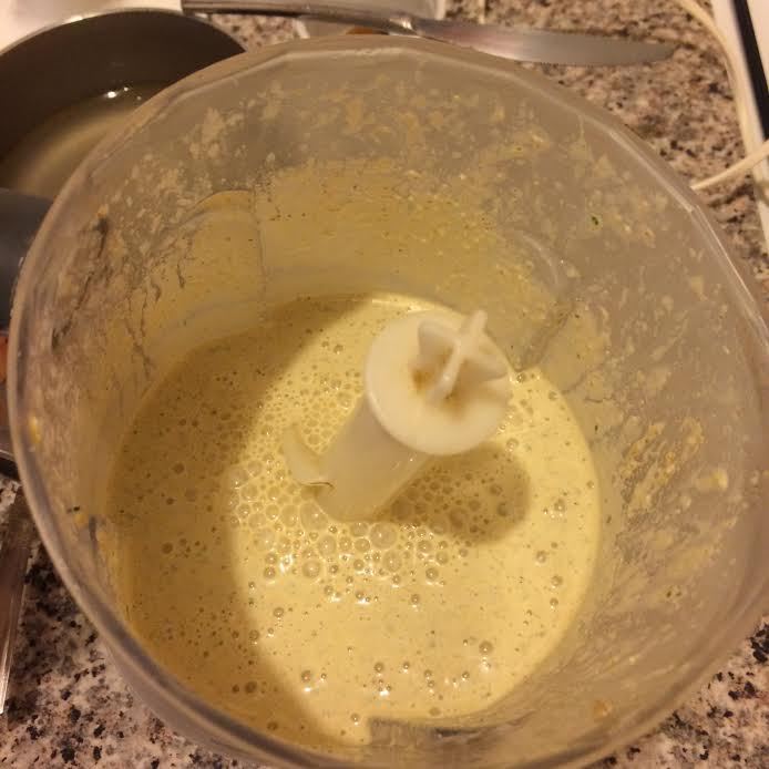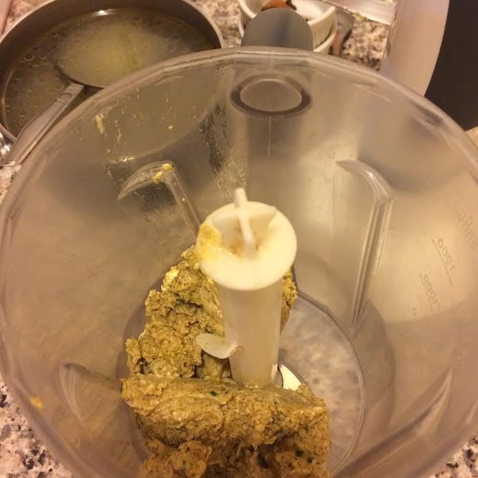 Теперь эту массу перекладываем в блендер и начинаем взбивать и постепенно подливать бульон.