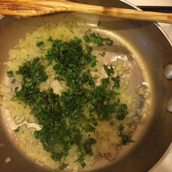 Затем добавить лук и кинзу и месить еще 5 минут.