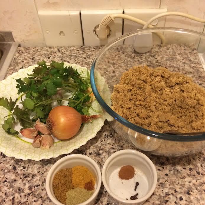 Лук мелко нарезать. Подготовить специи (в одной пиале у меня кориандр, уцхо-сунели, красный перец, имеретинский шафран, в другой — корица и гвоздика).