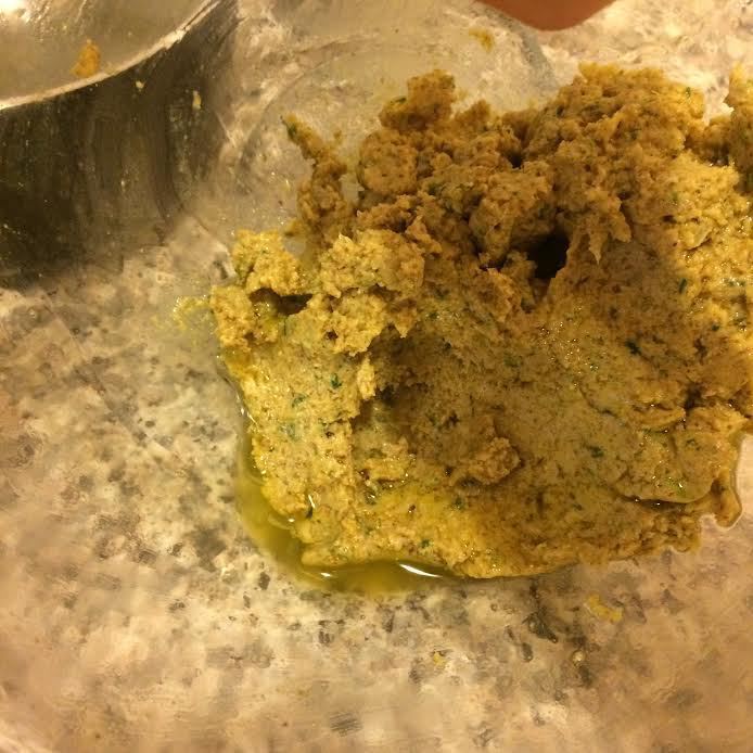 В орехи добавить соль, чеснок, специи (кориандр, уцхо-сунели, красный перец, имеретинский шафран) и начать все месить (рукой!!!) 5 минут.
