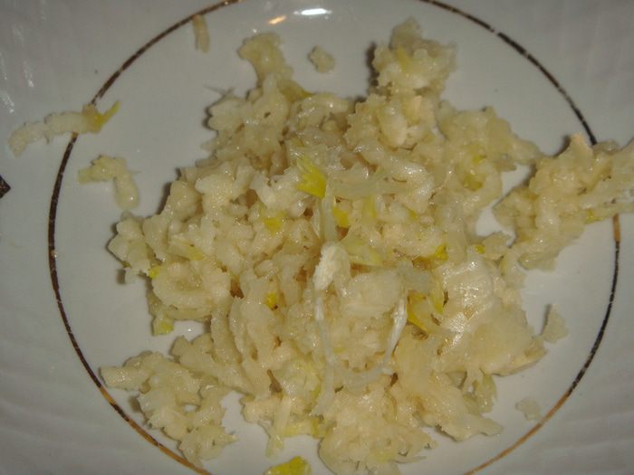 Чеснок пропустить через пресс и выложить в молоко, варить 2 минуты и выключить.