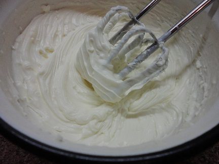 Приготовить крем. Сметану взбить с сахаром до его растворения. Добавить маскарпоне и продолжить взбивать до состояния однородного пышного крема.