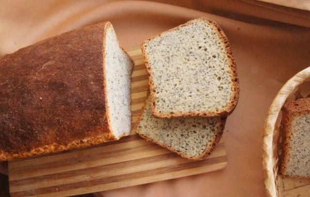 Выпекать хлеб с маком в разогретой до 220°С 15 минут, потом убавить до 180°С и готовить еще 30 минут.