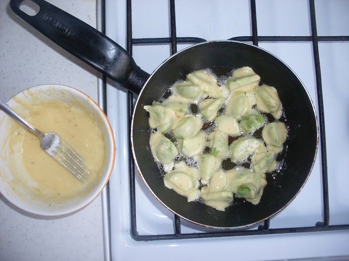 На сковороде жарим 1 — 2 зубчика чеснока в растительном масле.