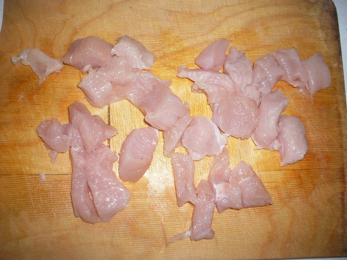 Мелко режем филе индейки.