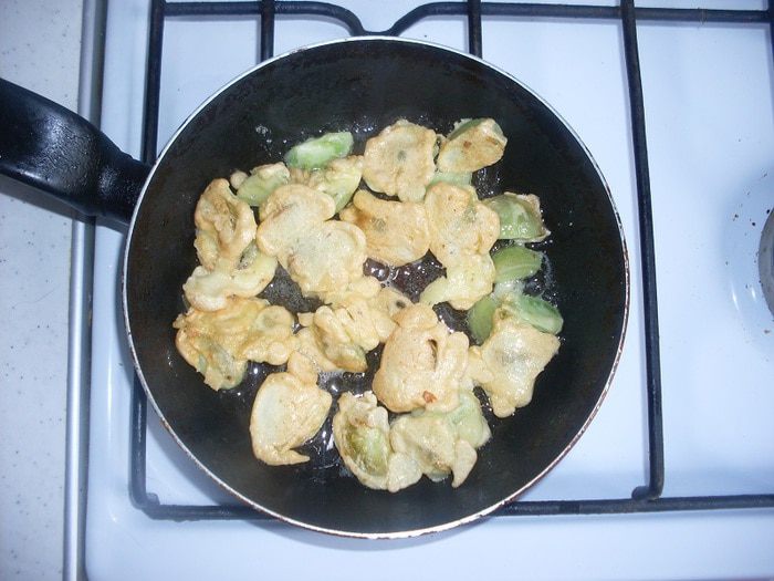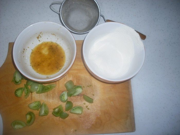 Можно пожарить помидоры, окуная каждый кусочек в кляр (мука, яйцо, немного воды).