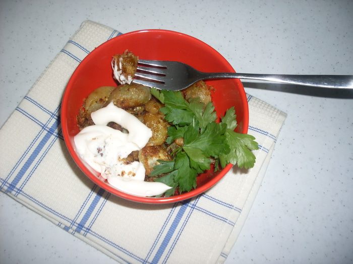 Подавать с зеленью, майонезом или другим соусом.