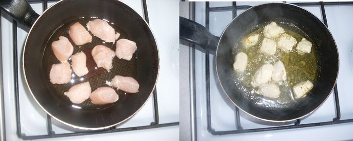 Обжариваем кусочки птицы, затем тушим их под крышкой.